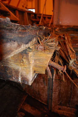 This was the place of the old hatch, there is not much left of the wooden beams underneath, luckily we still can find details of the original construction.