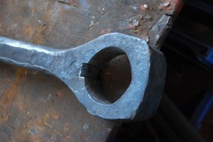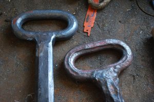 Our smith has made a new part for the steering system. Chains from the steering wheel control this arm that is connected to the rudder, it was originally made by a smith so we used the same techniques to copy the old one.