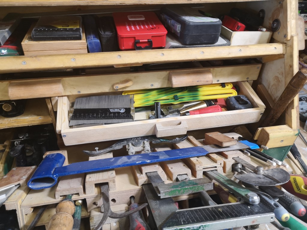 I have known for years that looking for a tool in a disorganized toolbox is a waste of time; that’s why I organize my tools. I also learned that planning a job is important, but there are many factors you can’t plan, so I plan as far as I can. When you just start in a particular career, it is always stressful when you don’t know what to expect. I started working with wood twenty years ago, and in the beginning, I tried to plan everything, but you almost always bumped into problems end needed to improvise. After a couple of years, I learned that less planning was needed; I had learned that it is not so hard to improvise and react to the situation and that I almost always found a solution.