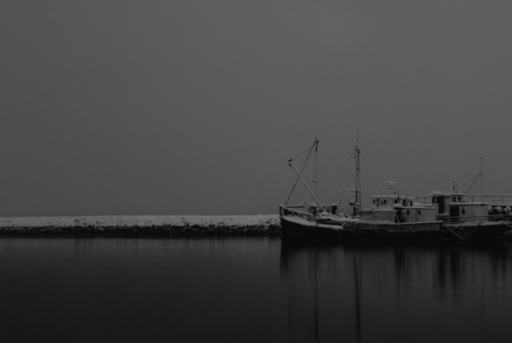 Day 2176, calm. Day's pictures, Poetry The water is dark from my vessels reflections it absorbs the grey sky it is calm ~ I see no sun is it going up or down the grey sky has taken all its light and a sign ~ standing at a distance I can imagine a sudden sound an engine that starts movement a ripple dispersing the reflection ~ I can still imagineShare this: Click to email a link to a friend (Opens in new window) Email Click to share on Mastodon (Opens in new window) Mastodon Click to share on Bluesky (Opens in new window) Bluesky Like Loading... Related