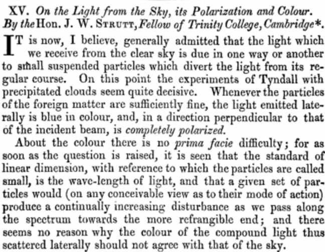 And here is a Quote from the scientist who wrote all of this down for the first time in 1871, John William strutt, 3rd Baron Rayleigh: