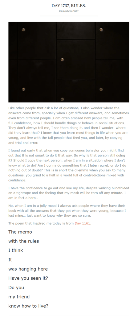 Day 3559, Eight posts, posted on 24 December. Daily picture Share this: Click to email a link to a friend (Opens in new window) Email Click to share on Mastodon (Opens in new window) Mastodon Click to share on Bluesky (Opens in new window) Bluesky Like Loading... Related