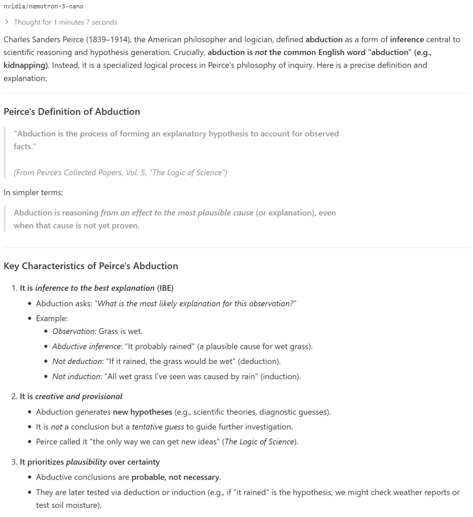 Abduction is the process of forming an explanatory hypothesis. It is the only logical operation which introduces any new idea; for induction does nothing but determine a value, and deduction merely evolves the necessary consequences of a pure hypothesis.