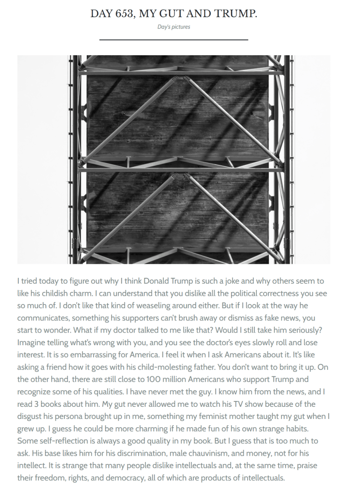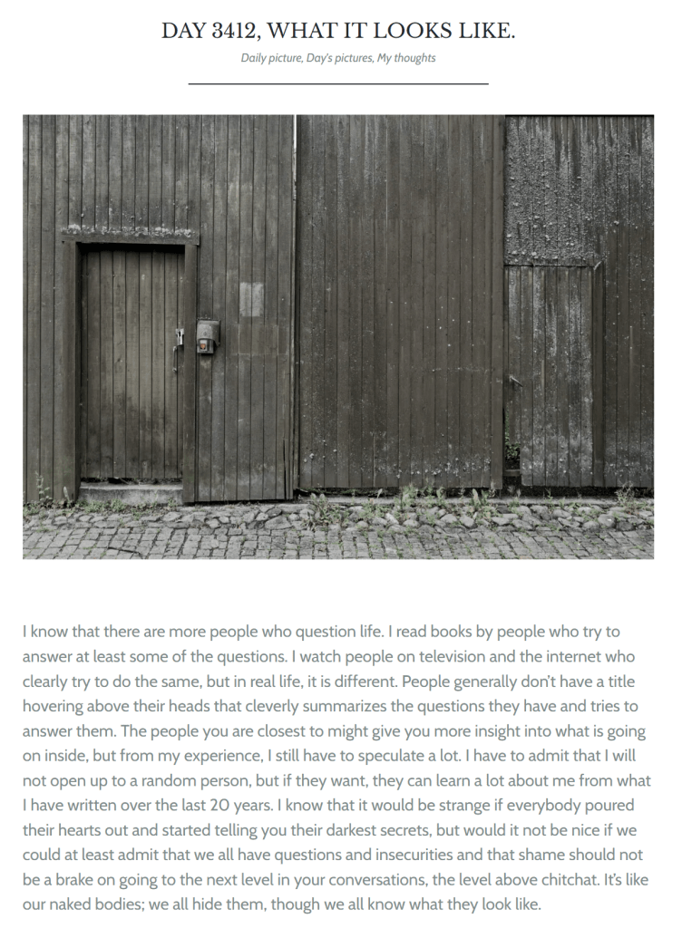 These are the pictures I took 3673 days ago, on March 24, 2016. It was the day I told myself I should take my so-called hobby a bit more seriously, so I challenged myself to take a picture every day and post it online. For the first 604 days, it was just pictures, and I posted on a photo website that I no longer have. I still have all the pictures, but you cannot find them on this blog. I am not sure why I moved to WordPress, but I guess it was about time to not only post a picture a day but also share some of my writing. I have always written, but irregularly, and I guess it was time to take that hobby more seriously, too. I never really posted on social media, mainly because I moved away from them in 2016, and because I have all kinds of opinions and I don’t care too much for interaction with people who have other opinions. That is just a waste of time. I had a few good interactions with people who commented here over the years, who might disagree with me, but they were in the form of long emails, not lunch-sized critiques with a side of word salad.
