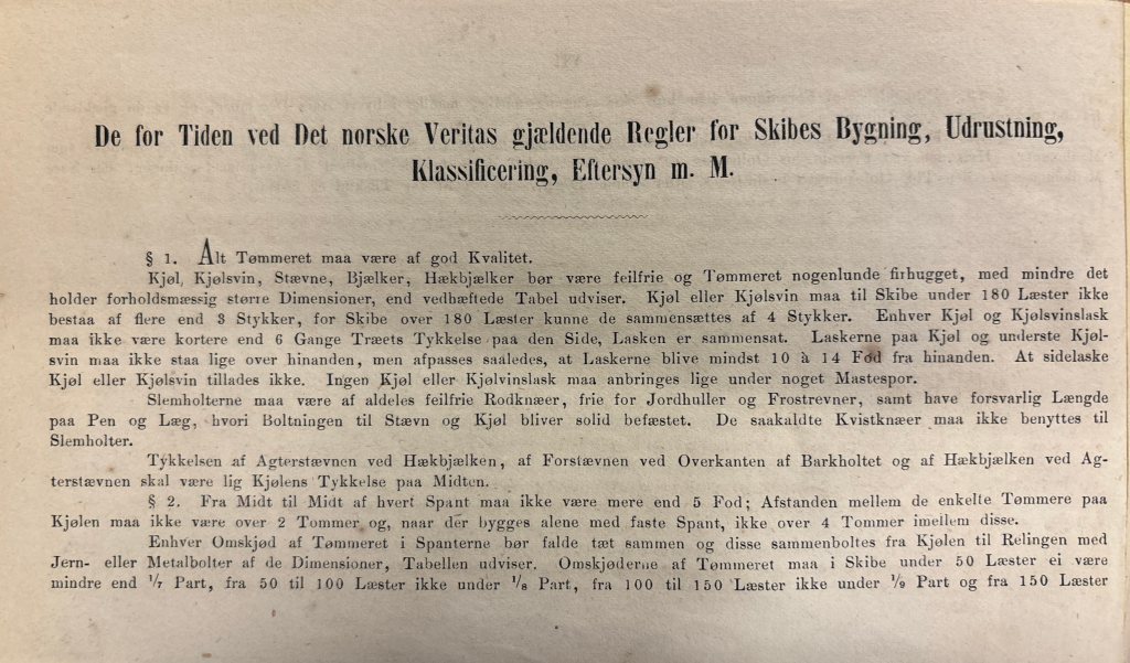 Although the technical content differs significantly from modern standards, the fundamental principles remain the same. The system is based on independent survey, standardized requirements, and a classification that reflects the vessel’s structural integrity and suitability for service. Over time, as shipbuilding transitioned from wood to iron and steel, these rules evolved into more calculation-based and engineering-driven standards. Nevertheless, the core idea introduced by Veritas in the 1860s—linking construction quality, inspection, and risk assessment—remains the foundation of modern classification systems, including those used by DNV today.