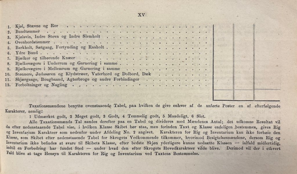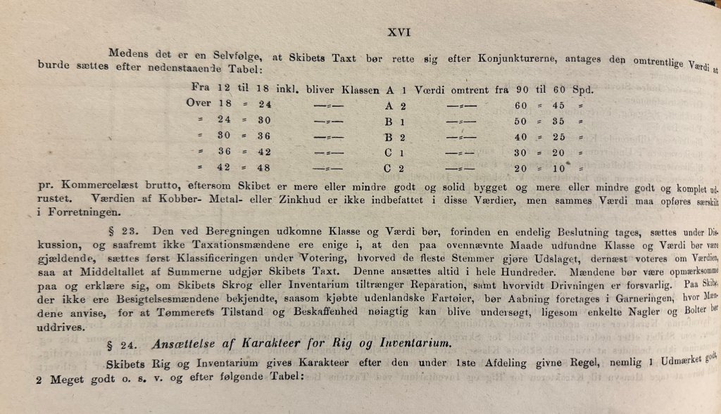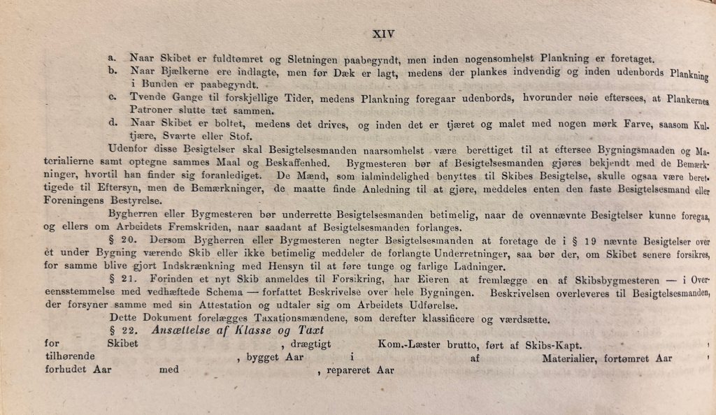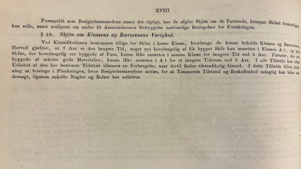 A key feature of these early rules is the close connection between material quality and class duration. For example, oak-built vessels could retain a high classification longer than those built of pine or inferior materials. The rules also required regular inspections, including, when necessary, opening up parts of the structure and removing fastenings to verify the internal condition of the timber. This reflects a practical and experience-based approach to ship assessment.