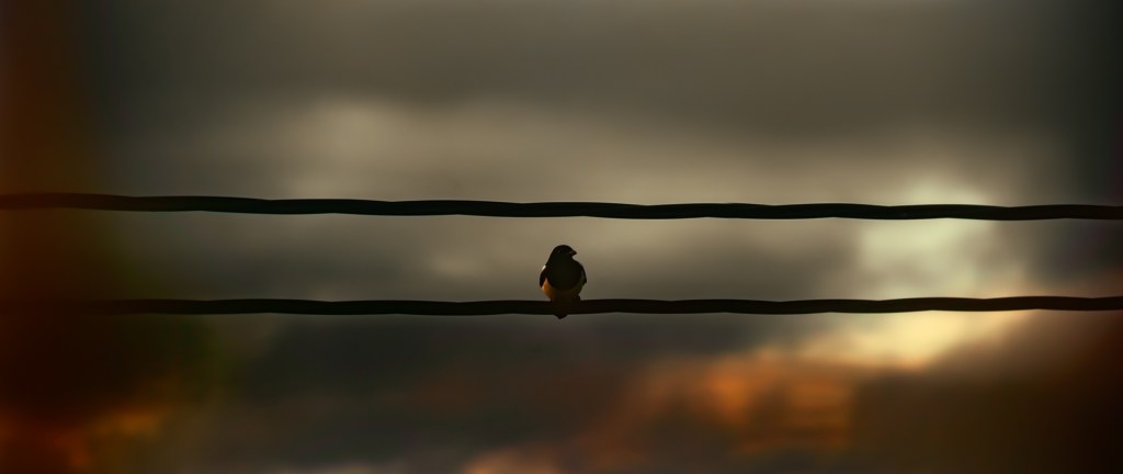 I saw this bird sitting on a wire, for a while it was just staring at the clouds and the colours, well…it was pointing in that direction. I wonder what this bird sees, does it feel joy? Yesterday I wrote about art and what kind of art I like; I don’t know if I said it yesterday but, I cannot say in all honesty why I like something. I can think of all kinds of reasons but I am pretty sure that the split-second it takes the visual information from my eyes to go to the brain and from there to ooze into my consciousness, the feeling of bliss is already there to feel. Somewhere between what happens in my brain and the route to consciousness a detour is made to my happy center, or the room opposite of that door.