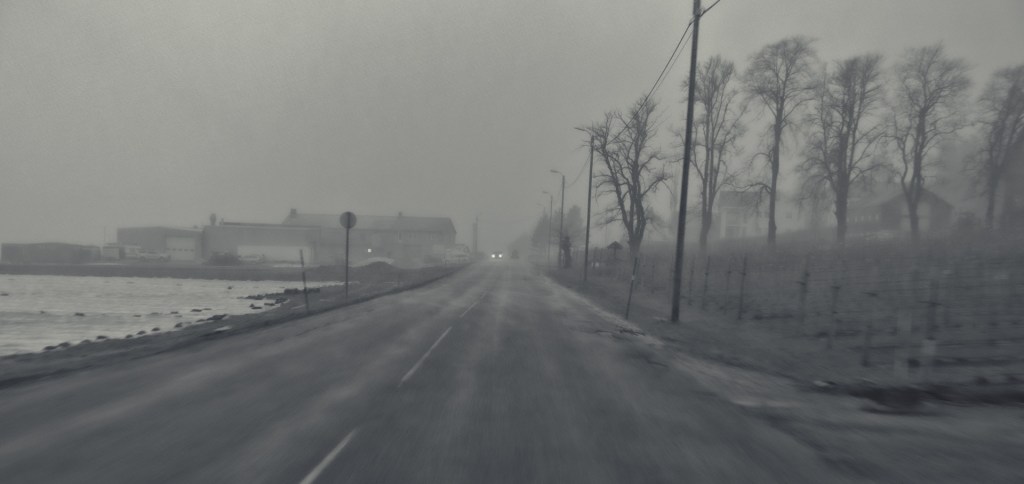 Day 1810, looking forwards. Daily picture, Poetry I am trying to stay between the lines so I can ignore the gray weather ~ while driving to a home somewhere out there
